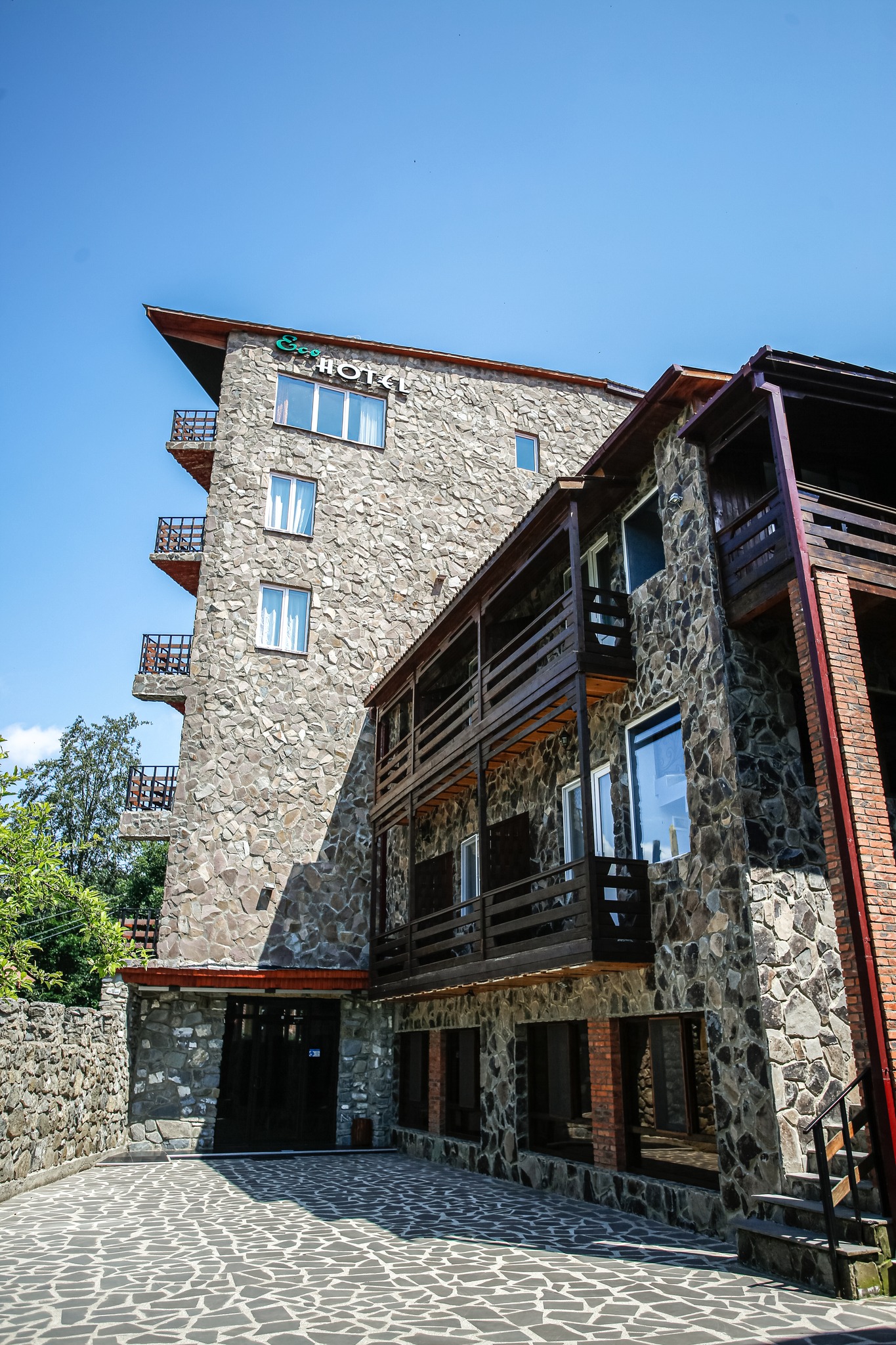 Eco Hotel Mzetamze - the best place for vacation relax in an ecologically clean, healthy and comfortable environment. The hotel located near Borjomi, on the edge of the forest. The complex includes sport fields, swimming pool. From all rooms are beautiful views.