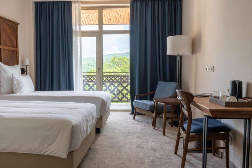 შატოს ტიპის 56 ნომრიანი სასტუმროს დიზაინი შექმნილია ტრადიციულ არქიტექტურულ სტილში და ამავე დროს გათვალესწინებულია ის თანამედროვე ელემენტები, რაც დღევანდელ სტანდარტებსა და მოთხოვნებს შეესაბამება. სასტუმროს ინფრასტრუქტურა მოიცავს ღვინის სარდაფს, სადაც მომხმარებელს შესაძლებლობა ექნება დააგემოვნოს საქართველოს სხვადასხვა კუთხის ღვინოები.